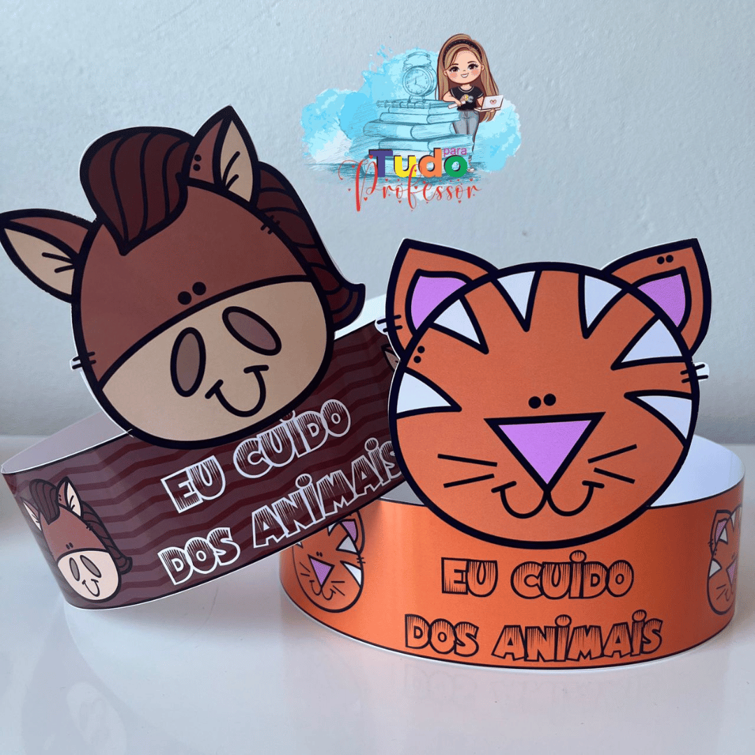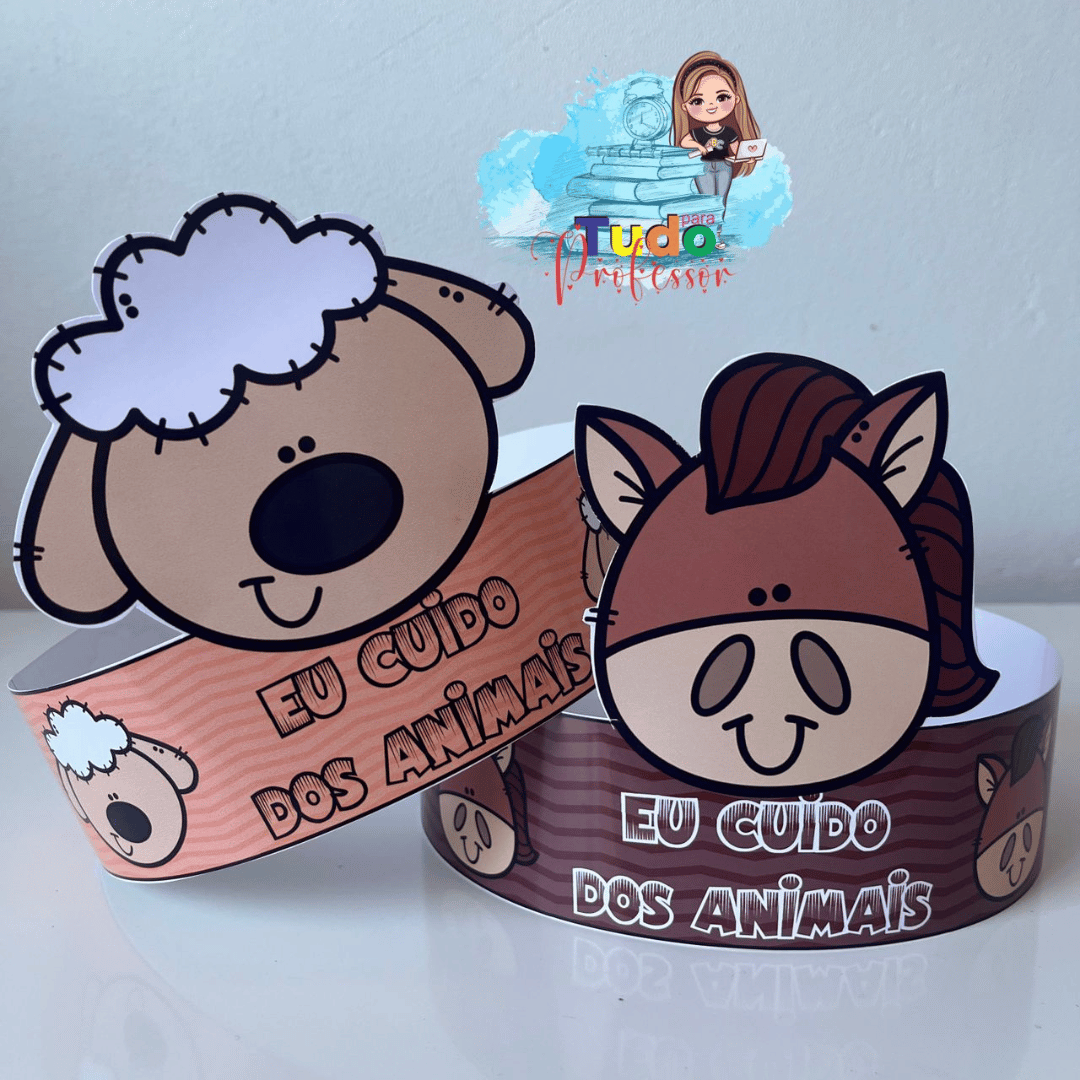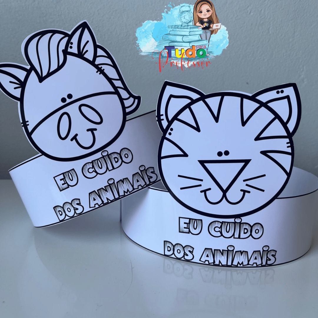 Material contém: 🐶 5 coroas de animais (gato, cavalo, sapo, ovelha e pato) coloridas 🦁 5 coroas de animais (gato, cavalo, sapo, ovelha e pato) para colorir.