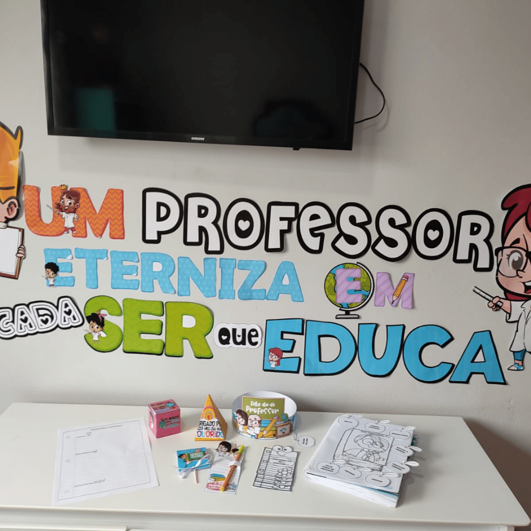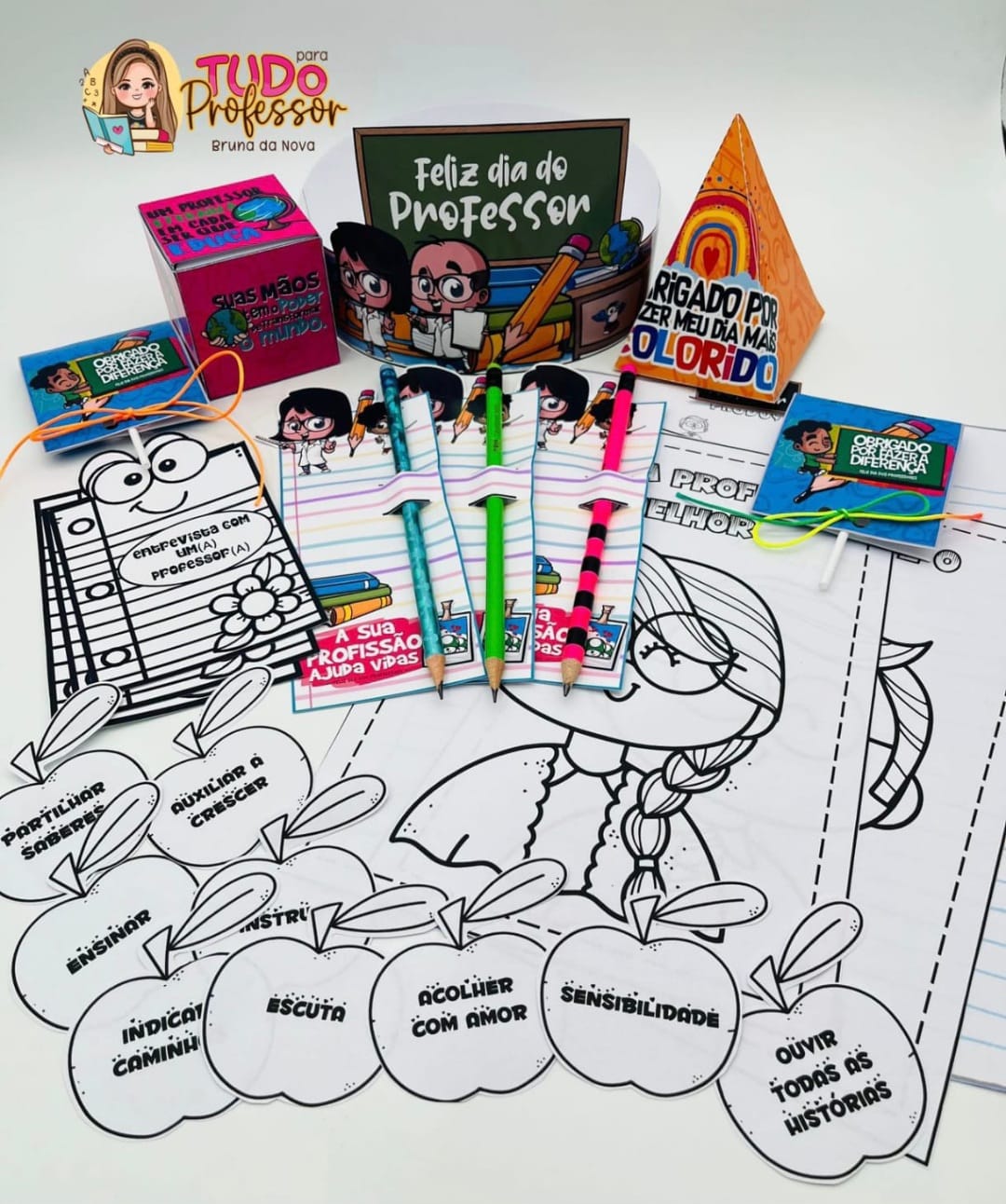 ✏️ Arte da frase. ✏️ 2 apliques ampliados. ✏️ 1 atividade interativa. ✏️ 1 flipbook: Entrevista com um professor. ✏️ TAG para pirulito. ✏️ 2 caixinhas presentes. ✏️ 1 atividade de produção textual. ✏️ Coroa. ✏️ Porta lápis.