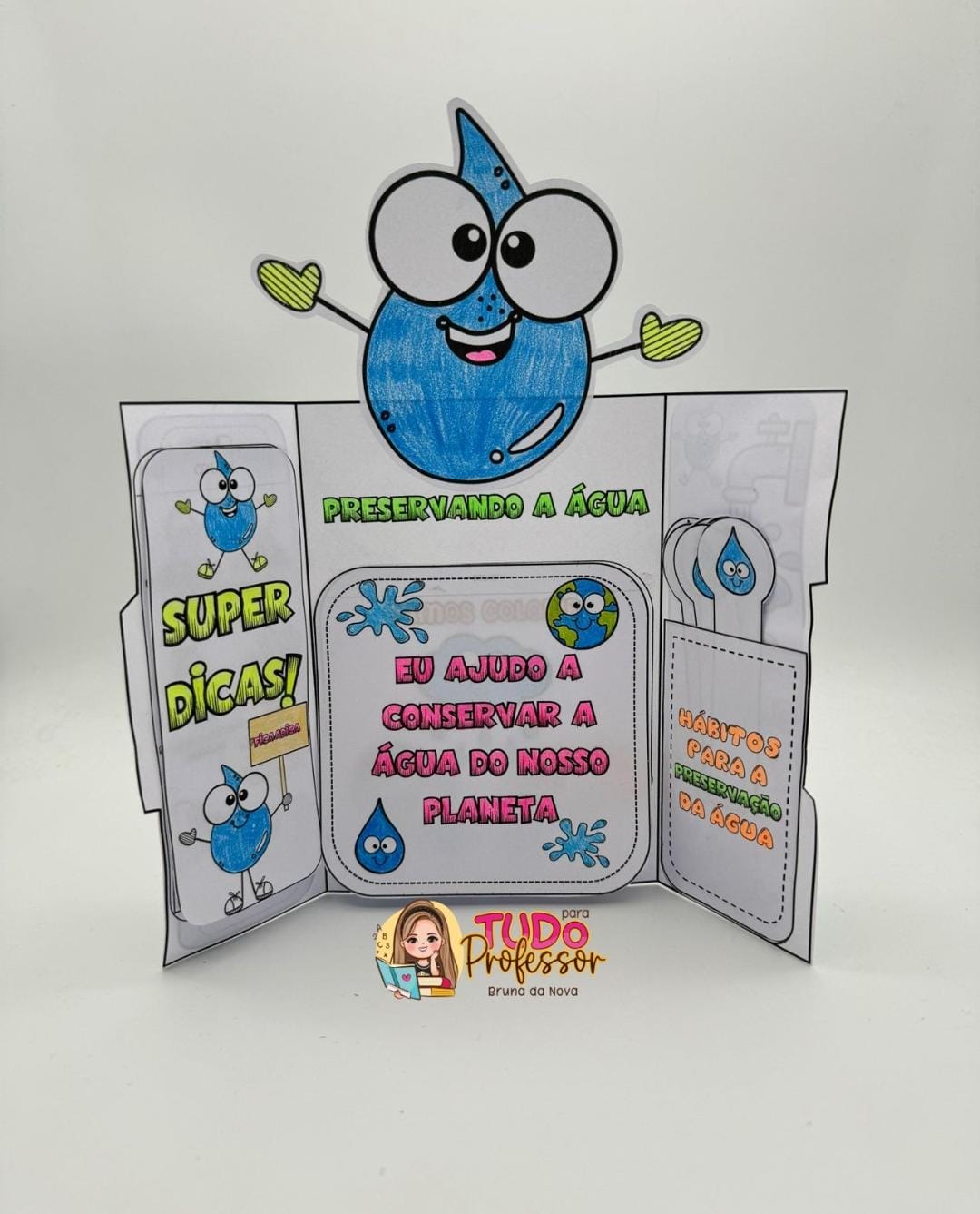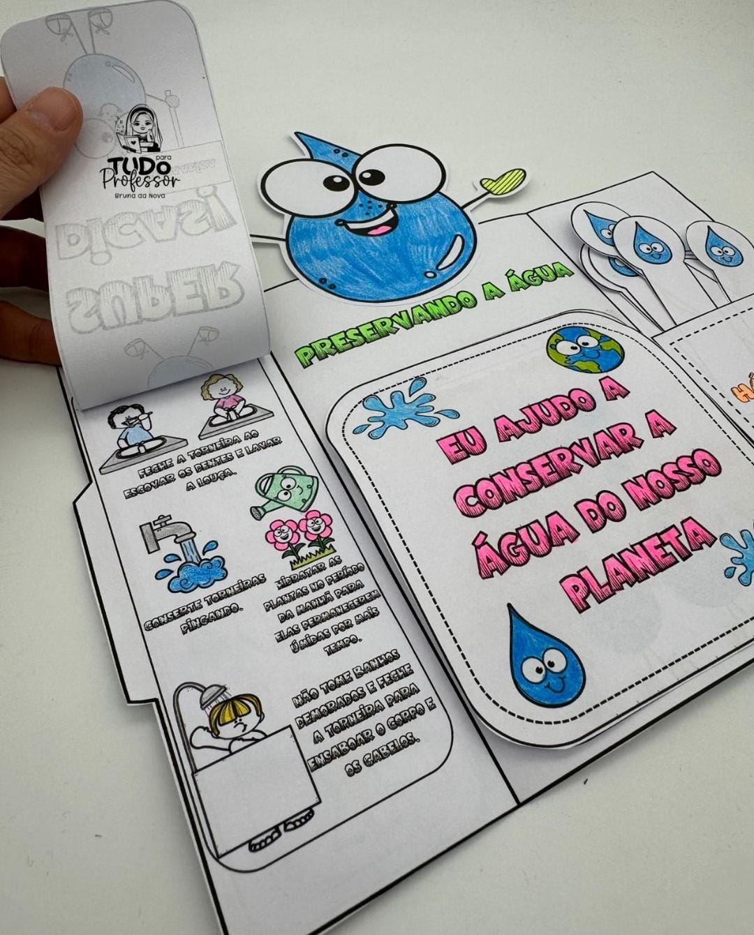 💧 Contém dicas para a preservação da água, espaço para colorir e escrever(ou desenhar) sobre bons hábitos de conservação.