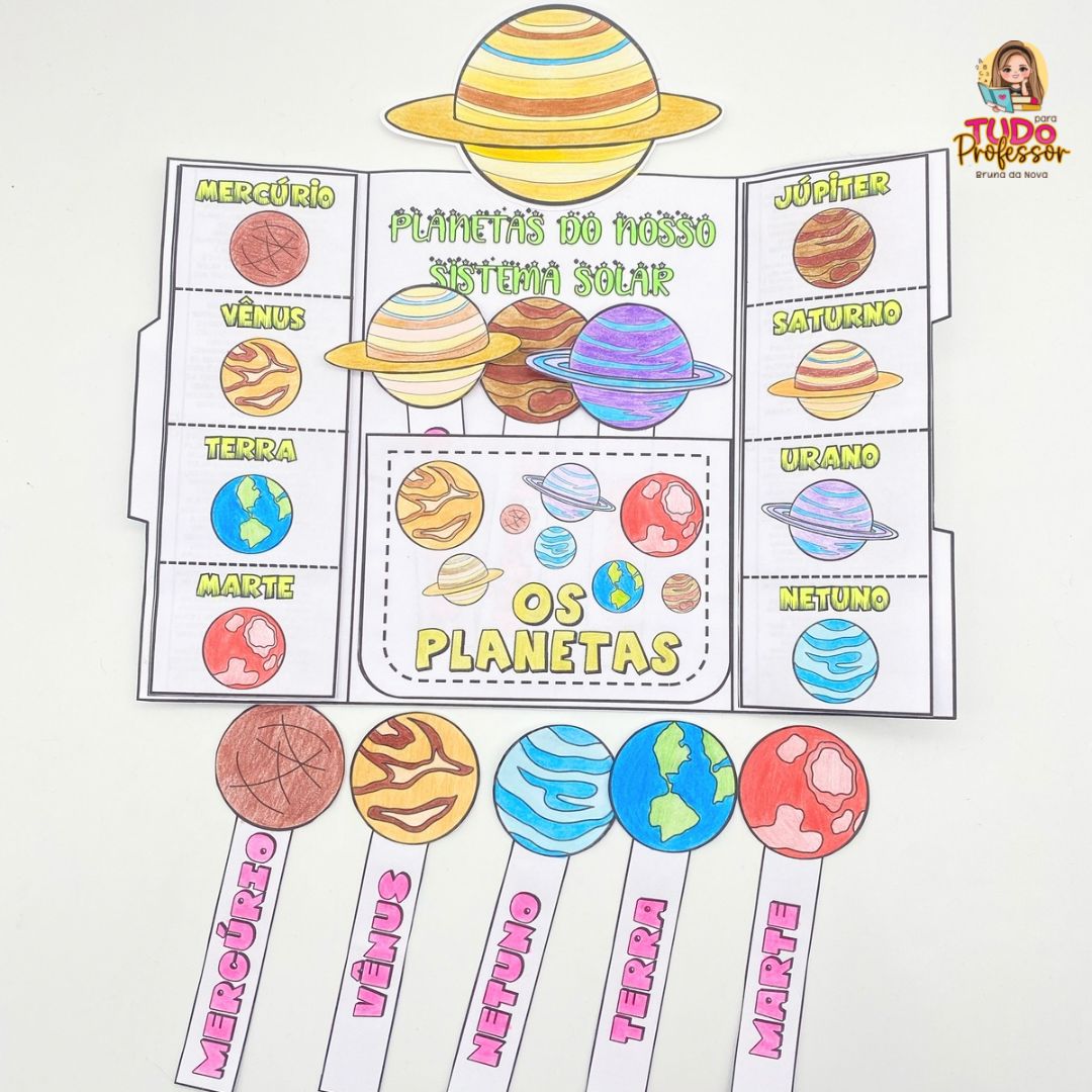 🌏Material em preto e branco pronto para imprimir, recortar e colorir. 🪐 Material contém os 8 planetas do sistema solar com breve descrição das características de cada um.