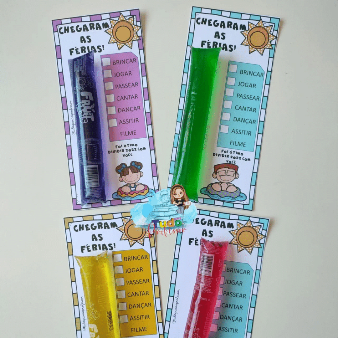 4 modelinhos de cartão para dar de lembrancinha com geladinho.