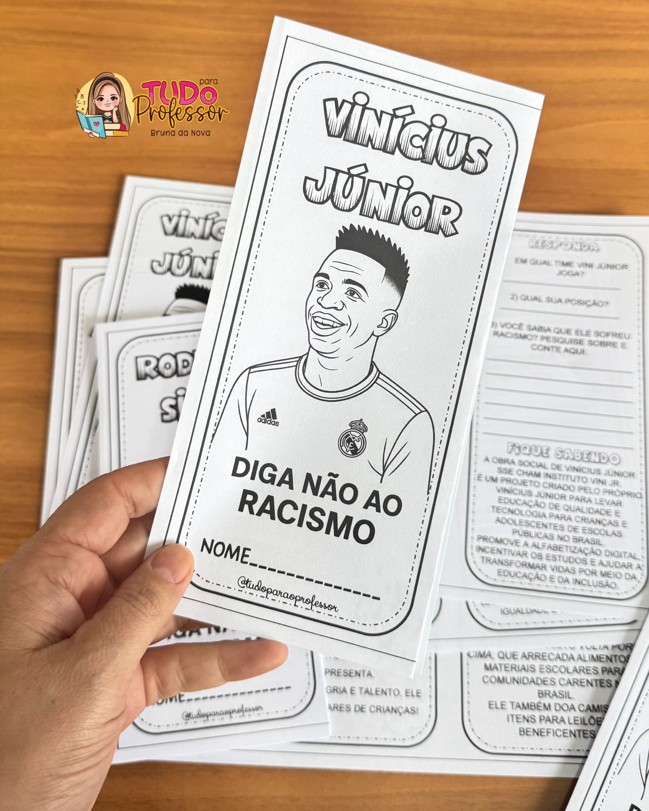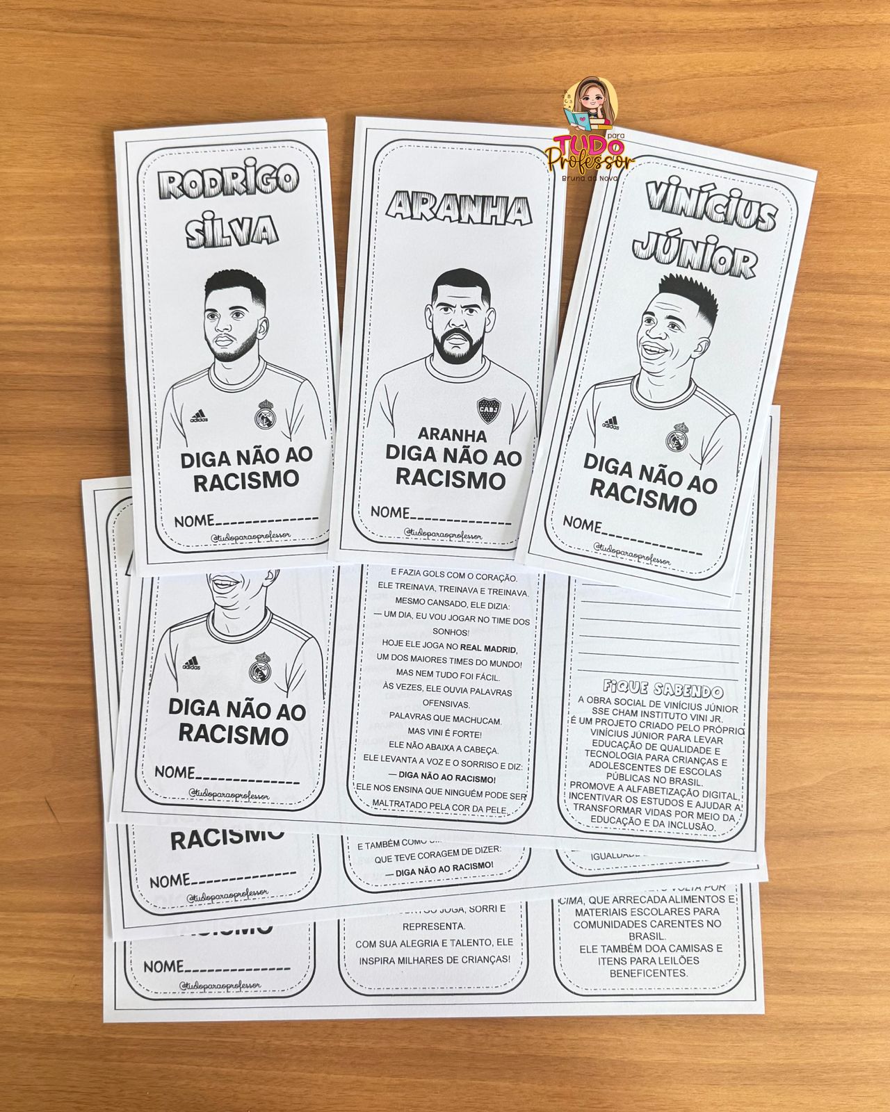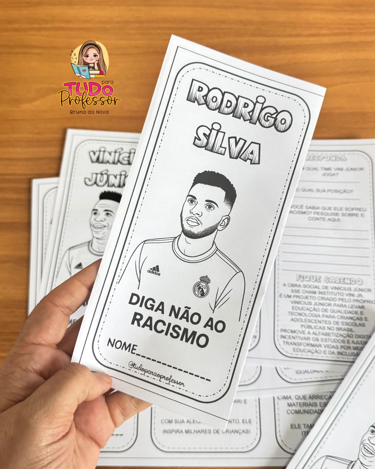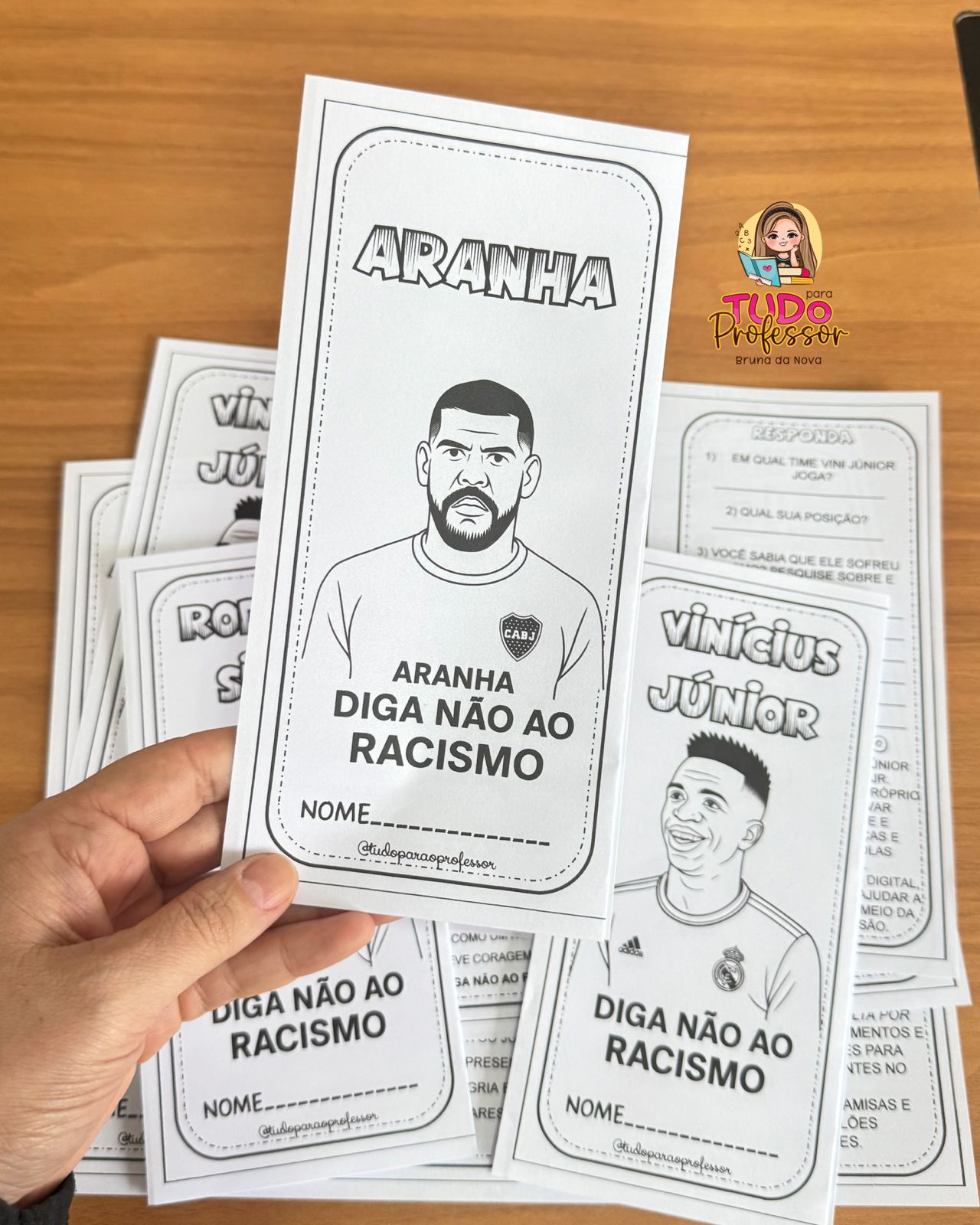 Com linguagem acessível, leitura deleite e atividades reflexivas, as crianças conhecem as trajetórias de Vinícius Jr., Aranha e Rodrygo, e aprendem sobre respeito, empatia e coragem.