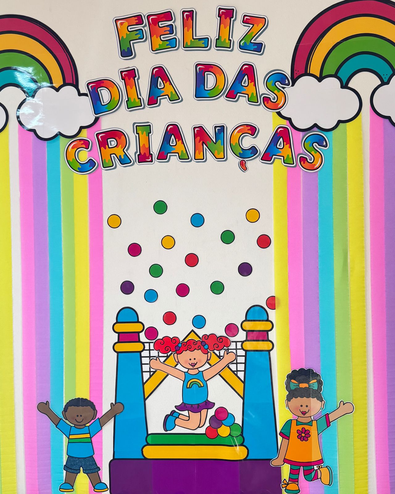 🎉 Com cores vivas, arco-íris, balões e personagens que remetem à brincadeira e inclusão, ele cria um espaço mágico para: