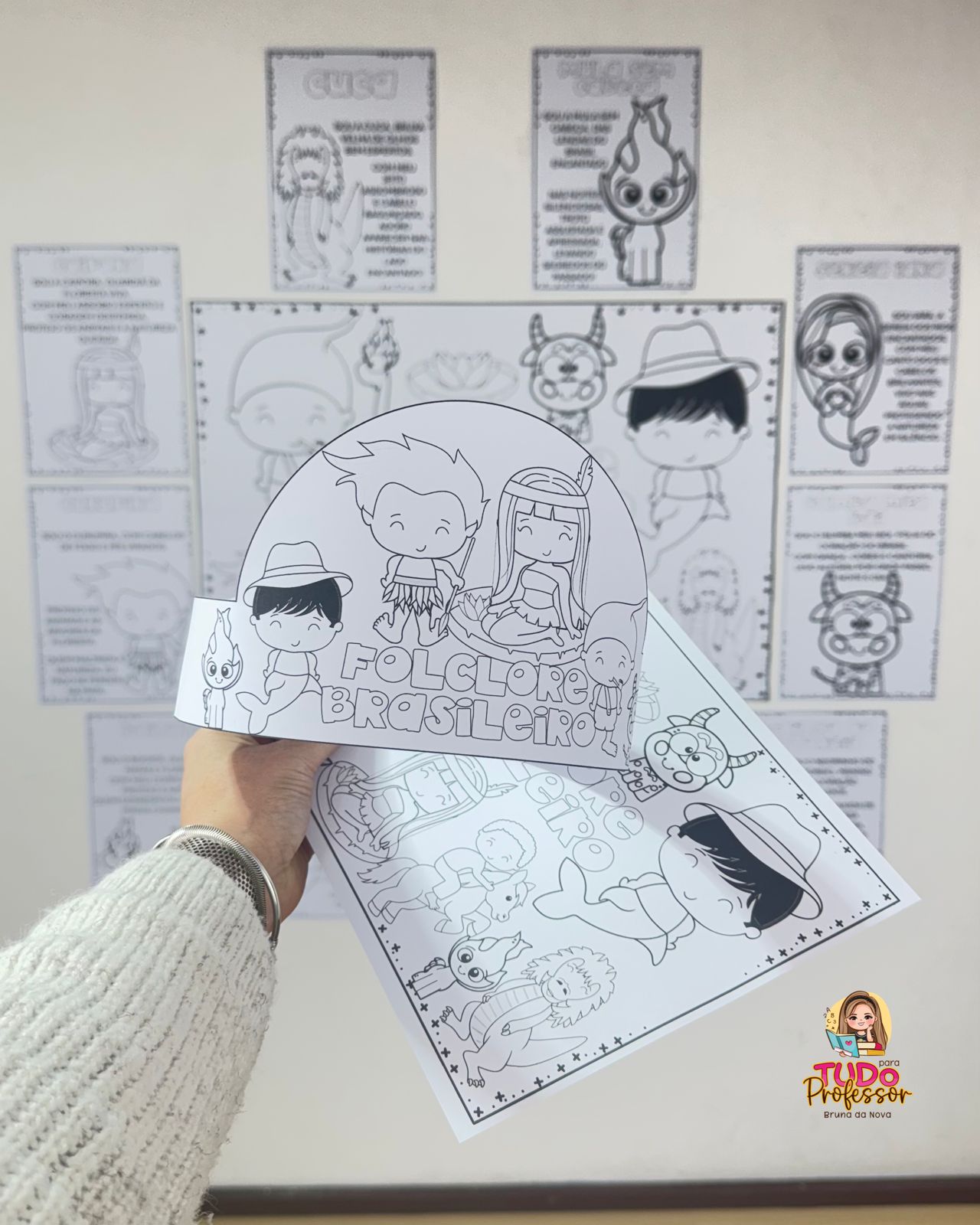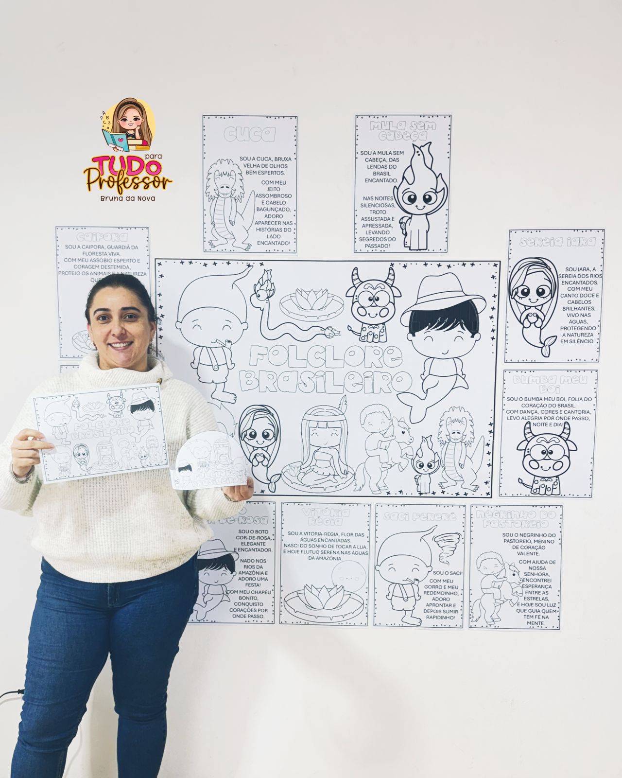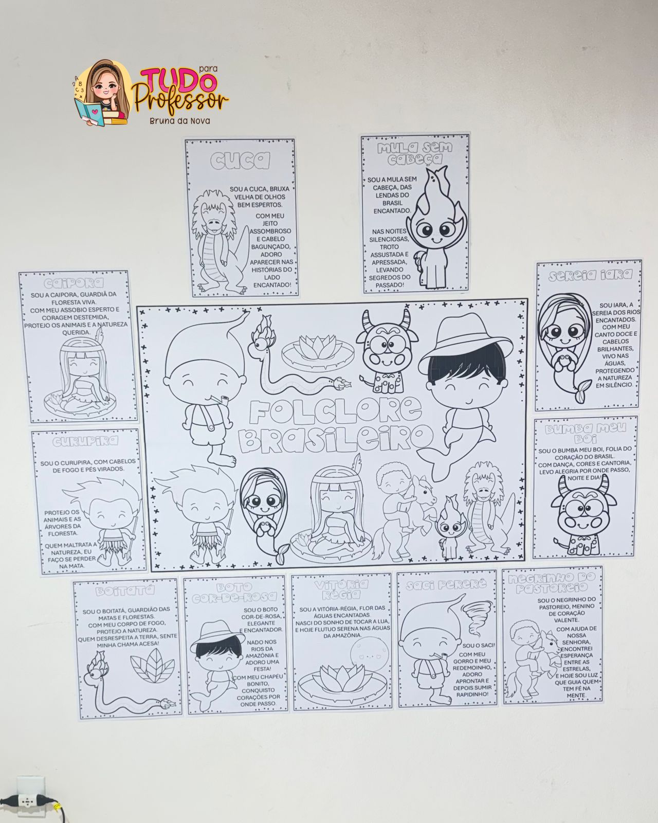 ✅ 11 painéis dos principais personagens folclóricos ampliados em 2 folhas e também tamanho A4