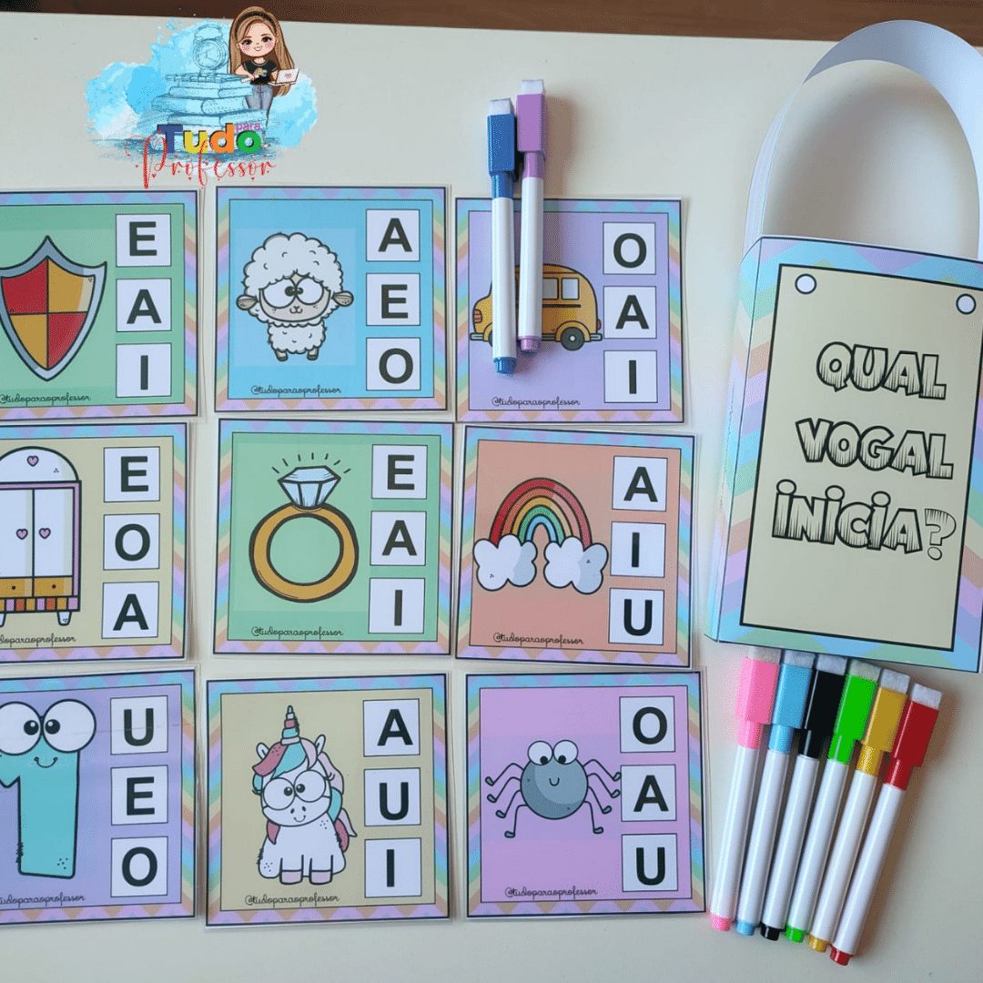 Atividade para trabalhar as vogais no início das palavras. Material contém: